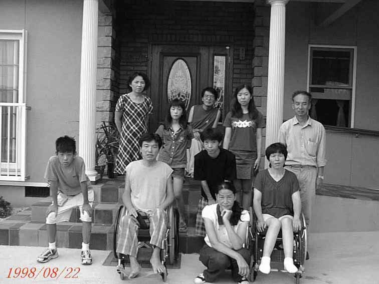 小澤さん一家と 静岡から佐賀へ見えられた折り ちょっと玄関先(JH6WQG宅)での小澤さん一家との思い出写真です